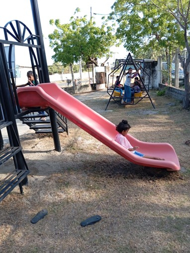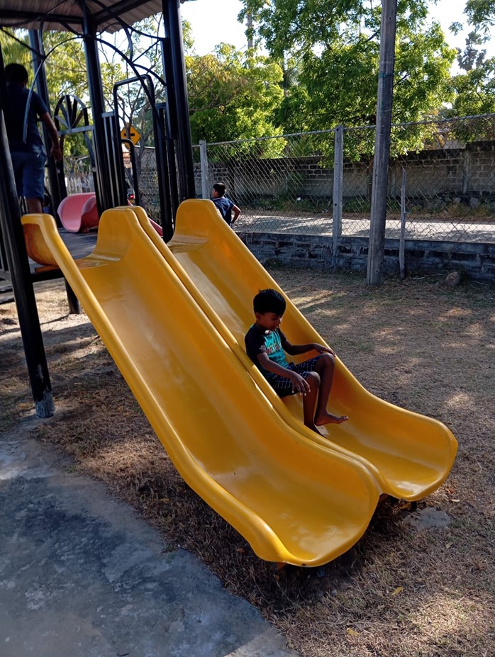 En nu met de verkoop van beelden van Jannie Russchen en schilderijen van Joke Ket is er ook nog een heuse speeltuin gerealiseerd. Jan en Yaliya zijn samen met de plaatselijke smid op stap geweest om te kijken wat mogelijk was voor de smid om te maken. De smid maakte alle toestellen en Jan en Yaliya hebben alles in de verf gezet.